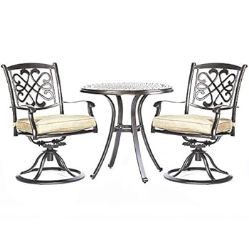 Patio Premier 217005 3pc Outdoor Tulip Garden Bistro Set, Cast Iron and Aluminum Frame, Bronze