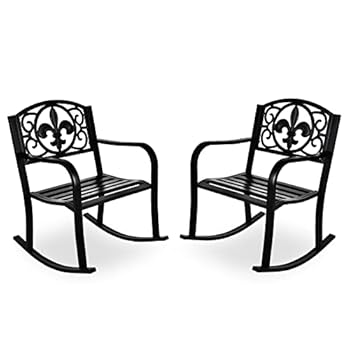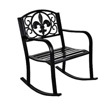 Fleur-de-lis is a beautiful classic decorative style that dates back centuries. The outdoor black rocking chairs with this floral style feature a unique shape and pattern that make them stand out from others. They are timeless and elegant.