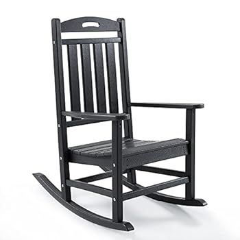 POLYDUN Outdoor Rocking Chair, Looks Like Wood, High Back Poly Lumber Patio Rocker Chair, 365Lbs Support, All-Weather Porch Rocking Chair for Lawn, Backyard, Indoor, Garden, Black