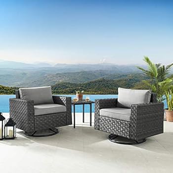 Crosley Furniture KO70094BR-GY Palm Harbor Outdoor Wicker Swivel Rocker Chair, Brown with Gray Cushions