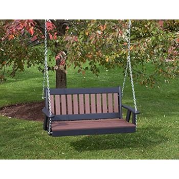 Ecommersify Inc 4FT-Cherrywood-Poly Lumber Mission Porch Swing Heavy Duty Everlasting PolyTuf HDPE – Made in USA – Amish Crafted