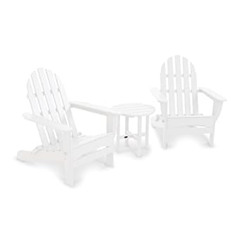 POLYWOOD PWS214-1-WH Classic Folding 3-Piece Adirondack Seating Set, White