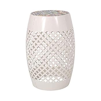 Christopher Knight Home Johnny Outdoor Lace Cut Side Table with Tile Top, White