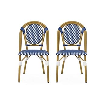 Christopher Knight Home Philomena Outdoor French Bistro Chair (Set of 2), Blue + White + Bamboo Print Finish