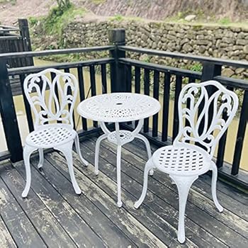 KAI LI Patio Bistro Sets 3 Piece cast Aluminum Patio Furniture Outdoor Garden Metal Rust Proof Tables and Chairs White bisrto Set (Big Tulip-White)