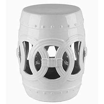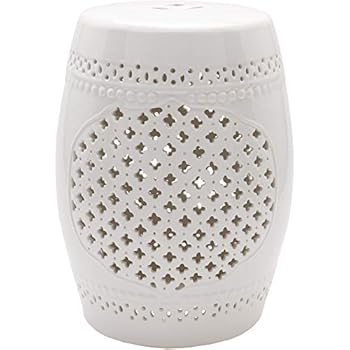 International Caravan Furniture Piece Perforated Antique White Drum Ceramic Garden Stool, White/Off-White