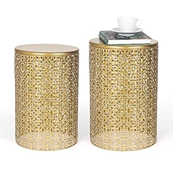 Homebeez Metal Accent Table, Set of 2 Decorative Round End Tables Nightstands, Coffee Side Tables for Indoor Outdoor (Gold)