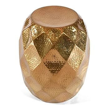 Aluminum Decorative Drum Stool (DH8044) | Round Metal Drum Accent | Garden Accent Side Stool | Home Decor Accent Stool for Indoor and Outdoor.(Gold).