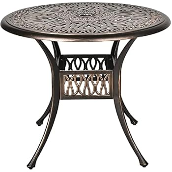 Outsunny 33″ Patio Dining Table Round Cast Aluminium Outdoor Bistro Table with Umbrella Hole – Black