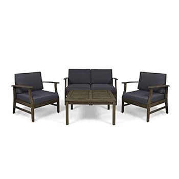 Great Deal Furniture Lorelei Outdoor 5 Piece Acacia Wood Chat Set, Gray and Dark Gray
