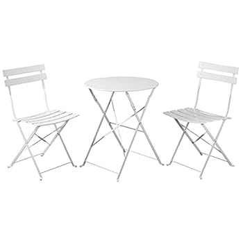 PATIO CHOICE Patio Bistro Set, Outdoor Patio Furniture Sets, 3 Piece Patio Set of Foldable Bistro Chairs and Table, White