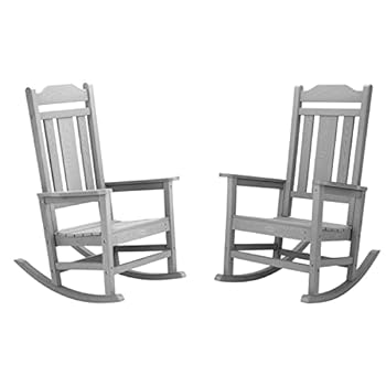 hOmeHua Patio Rocking Chair Set of 2, All Weather Resistant Outdoor Indoor Fade-Resistant Patio Rocker Chair,Stable Durable Smooth Rocking, Comfortable Easy to Maintain, Load Bearing 350 lbs – Grey