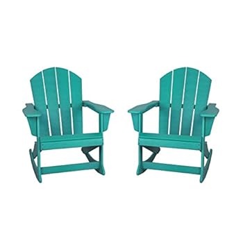 WestinTrends Malibu Outdoor Rocking Chair Set of 2, All Weather Resistant Poly Lumber Classic Porch Rocker Chair, 350 lbs Support Patio Lawn Plastic Adirondack Chair, Turquoise