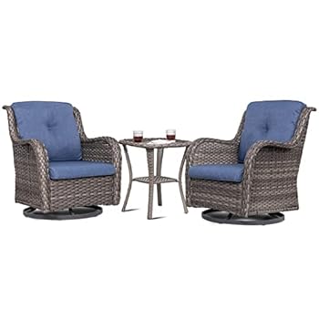 Joyside Outdoor Swivel Rocker Patio Chairs Set of 2 and Matching Side Table – 3 Piece Wicker Patio Bistro Set with Premium Fabric Cushions(Mixed Grey/Red)