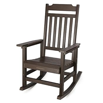 KINGYES Oversized Rocking Chair, Outdoor Porch Rocker Chair for Adult, All Weather- Resistant Patio Rocking Chair for Garden Lawn,Coffee