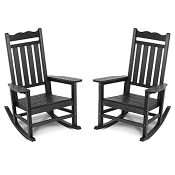 hOmeHua Patio Rocking Chair Set of 2, All Weather Resistant Outdoor Indoor Fade-Resistant Patio Rocker Chair,Stable Durable Smooth Rocking, Comfortable Easy to Maintain, Load Bearing 350 lbs – Black