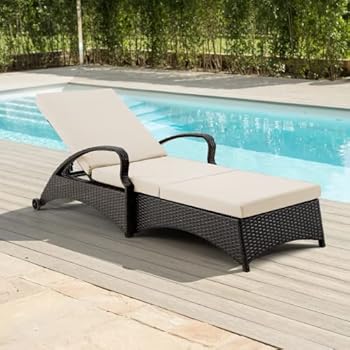 GYUTEI Chaise Lounge Chair with 5 Adjustable Position Thickened Cushion Outdoor Reclining Chaise with Ergonomic Arms for Patio Backyard Porch Garden Beach Poolside(Khaki)