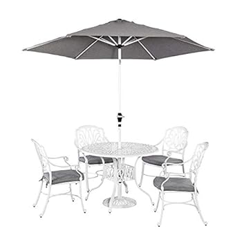 Phoenix Traditional Outdoor 4 Seater Round Cast Aluminum Dining Set by White Modern Contemporary Umbrell Hole