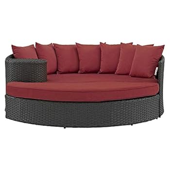 Modway EEI-1982 Sojourn Wicker Rattan Outdoor Patio Sunbrella Fabric Daybed in Canvas Red
