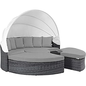 Contemporary Modern Outdoor Patio Lounge Daybed Sofa Bed Grey Gray Fabric Rattan Wicker
