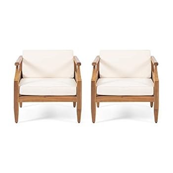 Christopher Knight Home Daisy Outdoor Club Chair with Cushion (Set of 2), Teak Finish, Cream