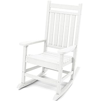 Cecarol Patio Oversized Rocking Chair Outdoor, Weather Resistant, Low Maintenance, High Back Front Porch Rocker Chairs 385lbs Support Poly Lumber Rocker, Wood-Like Plastic Chair, White-PRC01