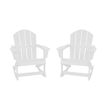WestinTrends Malibu Outdoor Rocking Chair Set of 2, All Weather Resistant Poly Lumber Classic Porch Rocker Chair, 350 lbs Support Patio Lawn Plastic Adirondack Chair, White