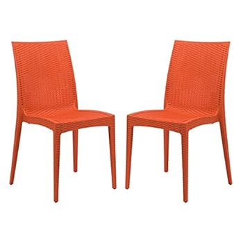 LeisureMod Hickory Indoor-Outdoor Modern Weave Design Stackable Dining Side Chair Set of 2 (Orange)