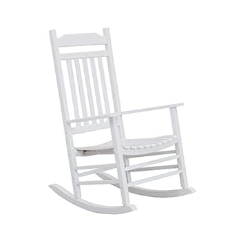 BplusZ Patio Rocking Chair for Indoor Outdoor Use – Wooden Furniture Adults Rocker for Porch, Balcony, Backyard and Garden White