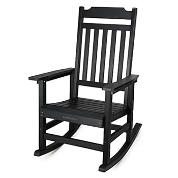POLYDUN Outdoor Rocking Chair, Looks Like Wood, High Back Poly Lumber Patio Rocker Chair, 365Lbs Support, All-Weather Porch Rocking Chair for Lawn, Backyard, Indoor, Garden, Black