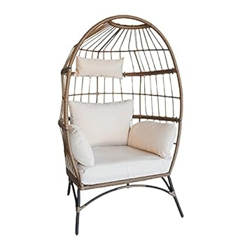 LUCKYBERRY Wicker Egg Chair Rattan Chair Brown, Outdoor Patio Porch Lounge…