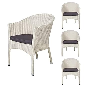 KARMAS PRODUCT 4 PCS Outdoor Rattan Chairs Patio Garden Furniture with Seat Cushions,Weave Wicker Armchair (White)
