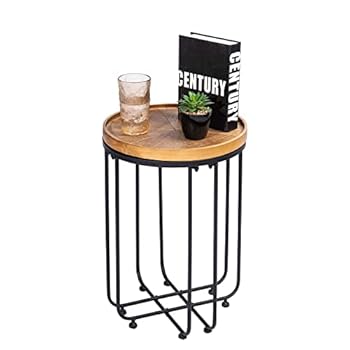 Vipush End Table Side Table Stable Metal Frame with Wood Top Coffee Snack Table for Living Room, Bedroom, Dining Room, Balcony, Wood Brown, 14 x 14 x 20 Inches