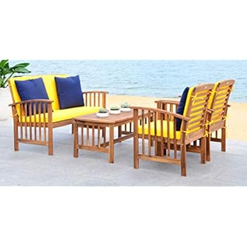 Nonetheless, if you are overwhelmed don't think negatively; we've covered everything for you. We offer the finest extensive list of fairly priced wood patio conversation sets anywhere. With dozens of different and unique outdoor patio décor and outdoor furniture products, we will assist you in identifying the appropriate option for your personal taste and outdoor living space. Options such as the "SAFAVIEH Outdoor Collection Alda Natural/ White Cushions/ Navy Pillows 4-Piece Conversation Patio Set", for example, offer several advantages over many other offerings. This one is one of the best models you can buy.