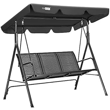MCombo Outdoor Patio Canopy Swing Chair 3-Person, Steel Frame Textilence Seats Swing Glider, 4507 (Black)