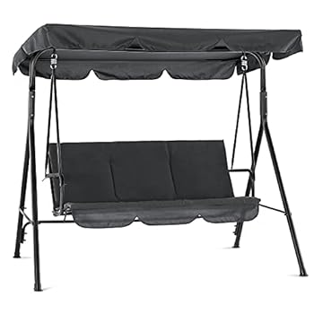 MCombo 3-Person Outdoor Patio Swing Chair, Convertible Canopy Hanging Swing Glider Lounge Chair, Removable Cushions, 4003 (Dark Gray)