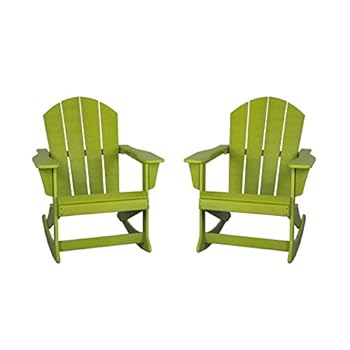 WestinTrends Malibu Outdoor Rocking Chair Set of 2, All Weather Resistant Poly Lumber Classic Porch Rocker Chair, 350 lbs Support Patio Lawn Plastic Adirondack Chair, Lime