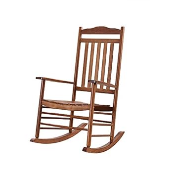 BplusZ Outdoor Wooden Rocking Chair for Patio and Porch – Traditional Indoor Outside Furniture Rocker for Lawn, Backyard and Garden, Brown