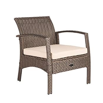 Patio Sense 62776 Bondi Armchair All Weather Lightweight & Durable Outdoor Seating Wicker Low Maintenance Khaki Cushion Included – Mocha