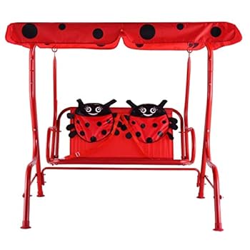 Casart Children’s Swing, Patio Swing with Safety Belt and 2 Seats, Ladybug Pattern