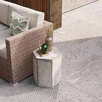 SUNBURY Outdoor Concrete Side Table, Patio Accent Table for Outside, 16″ Hexagon Outdoor Side Table, Outdoor End Table Concrete Outdoor Table Coffee Table in Distressed Grey White