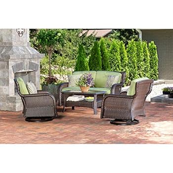 Hanover Strathmere 4-Piece Outdoor Patio Deep Seating Lounge Set with Loveseat, 2 Swivel Chairs with Thick Foam Cushions, Four Accent Pillows and a Glass-Top Coffee Table, STRATH4PCSW-LS-GRN