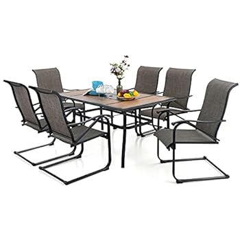 PHI VILLA 7 Piece Outdoor Dining Set for 6, Metal Dining Table (Not Wood Table Top)& C-Spring Dining Chairs, Durable and Quick-Drying All-Weather Dining Furniture Set for Patio, Deck, Porch