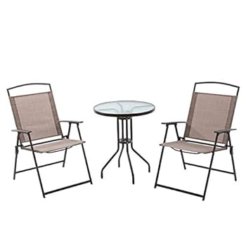 Crestlive Products 3PCS Patio Dinning Set Outdoor Bistro Set 2 Folding Chairs, w/Round Textured Tempered Glass Tabletop Outside Dining Furniture for Balcony, Yard, Poolside, Lawn, Terrace(Beige)