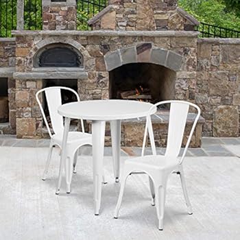 The white plastic bistro sets are mostly available in vintage, contemporary or modern designs. Choose a metal bistro set in white color if you want to add an artistic touch to your patio. Most of these patio bistro sets feature round tables and dining, Acapulco, rocker or Adirondack chairs.