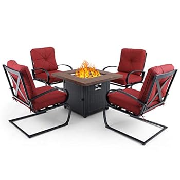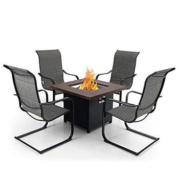 Check latest priceWhat’s more, the 4 swivel patio dining chairs are quite comfy. The fire pit table has a heat output of 50,000 BTUs, which is far more than what most of its competitors can offer. When the fire pit is not in use, you can easily cover it with the included cover lid and transition the dining table into a classic outdoor dining space. And the auto-ignition feature of the fire pit table makes it easy to use and eliminates the need for matches or lighters. This set is a clear winner when it comes to both quality and functionality.