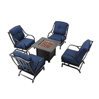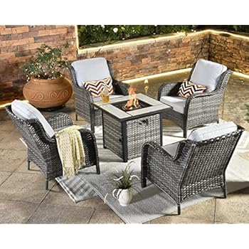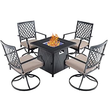 PHI VILLA 5 Piece Patio Set with 50000 BTU Fire Pit Table and 4 Swivel Patio Dining Chairs